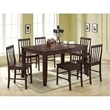 C60S2ES Features: -7 Piece dining set.-Ships ready to assemble. Includes: -Set includes table and six chairs.-Table top includes beveled edge. Construction: -Solid wood construction. Color/Finish: -Espresso finish. Dimensions: -Table dimensions: 32'' H x 60'' W x 40'' D.-Chair dimensions: 37'' H x 20'' W x 18'' D. Made of Solid Wood Pictured in Espresso Stylish contemporary design Rich solid wood finish Table top includes beveled edge